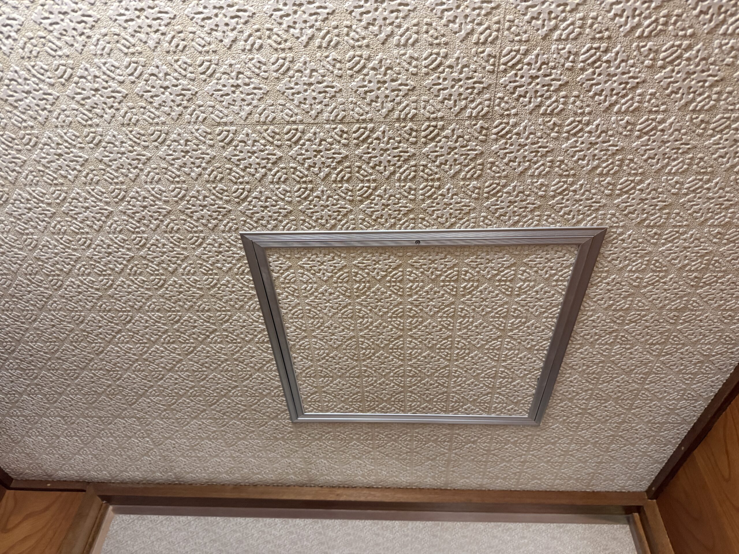 - 天井板に雨漏りのようなシミができている