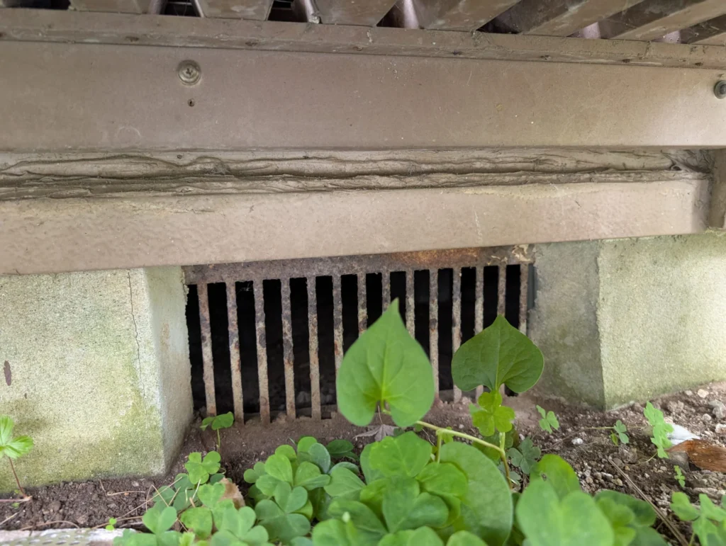 住宅の床下には、湿気を逃がして建物の劣化を防ぐために床下通気口が設けられています。普段はあまり意識されない部分ですが、ネズミの侵入経路として非常に多いポイントのひとつです。