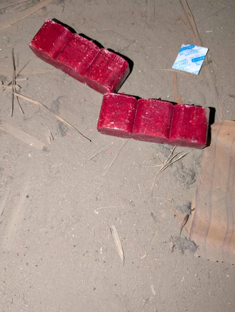 この事例では、ネズミが通過・立ち寄りやすい環境を選んで毒餌(赤いブロック)と忌避剤(黒いブロック)を設置しました。