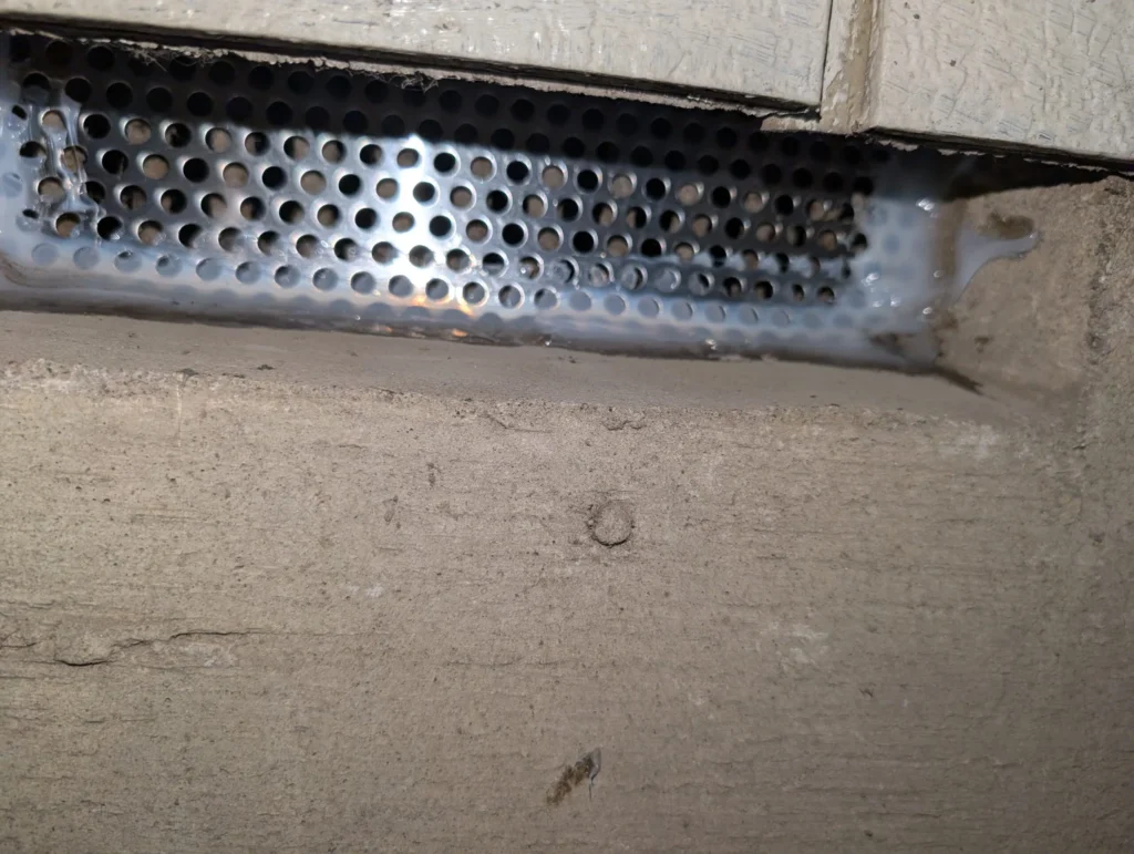 パンチングメタルは通気性を確保しつつ、ネズミの侵入を防ぐのに最適な資材で、見た目にも違和感がなく、耐久性にも優れています。